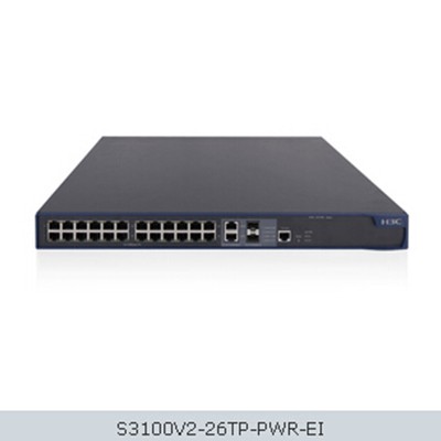 * S3100V2-26TP-PWR-EI:24個(gè)10/100Base-TX以太網(wǎng)端口(PoE),2個(gè)10/100/1000Base-T以太網(wǎng)端口和2個(gè)復(fù)用的100/1000Base-X SFP端口;