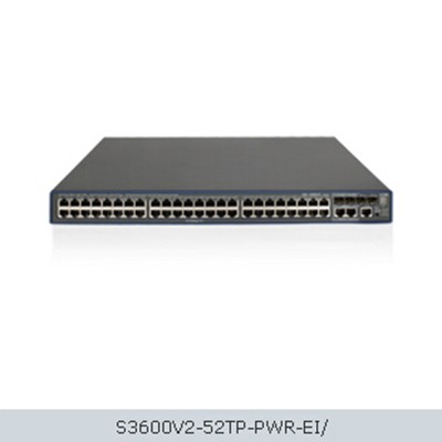 * S3600V2-52TP-PWR-EI:48個10/100Base-TX以太網(wǎng)端口(POE+),2個1000Base-T與1000Base-X SFP Combo端口,2個1000Base-X SFP千兆以太網(wǎng)端口。